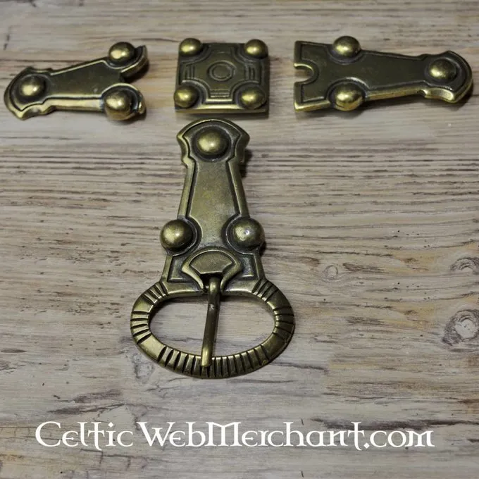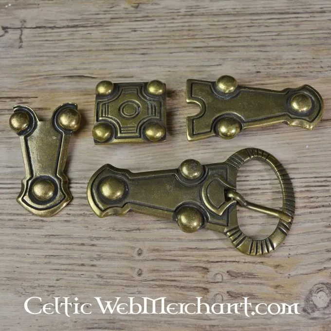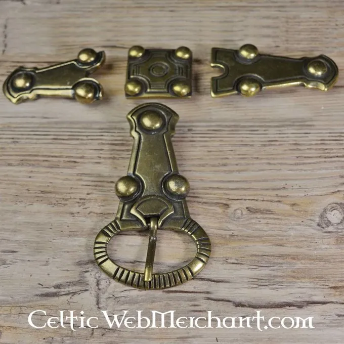 Cet ensemble est fait à la main en bronze. Il est adapté pour une ceinture d’une largeur maximale de 4 cm.