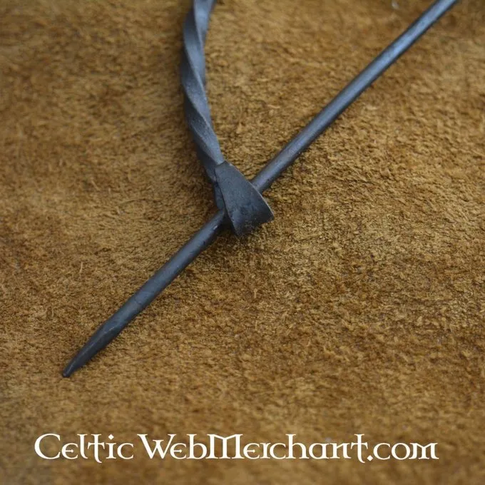 Cette broche en fer torsadé est entièrement faite à la main. Sa longueur est de 14 cm et elle a épaisseur d’environ 4mm.
