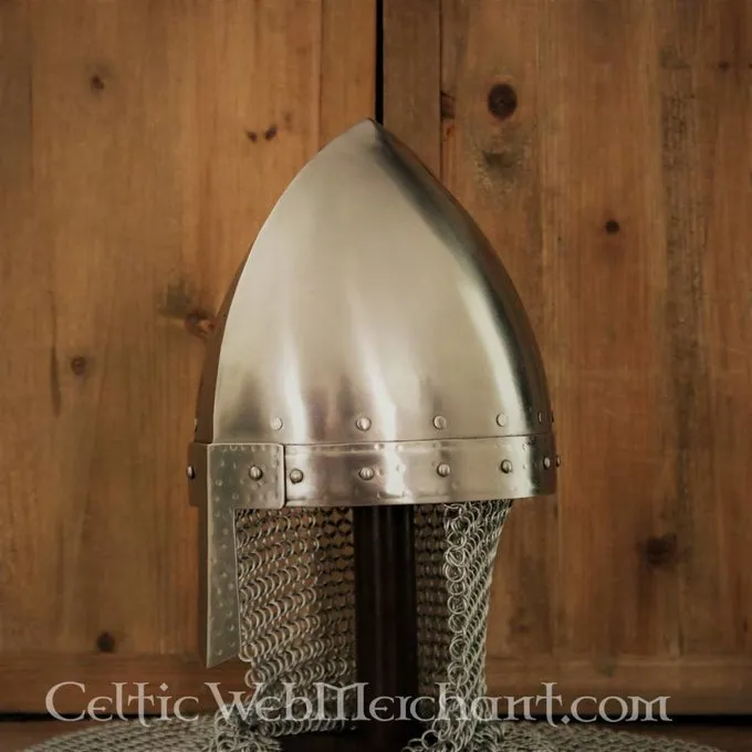 Ce casque est fait après plusieurs représentations de la Tapisserie de Bayeux. Casques de ce genre étaient principalement usé entre le 11ème et 13ème siècle dans toute l’Europe.