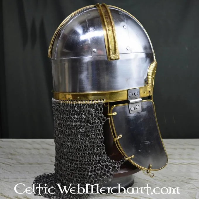 Ce casque est une réplique d’un casque anglicane trouvé dans York (Angleterre). Le casque date du 8thcentury AD et est une trouvaille unique, car à quelques casques de cette période ont été trouvés. Une inscription a été gravée sur le bord de laiton:? Au nom de notre Seigneur Jésus, le Saint-Esprit et Dieu, et tout ce que nous disent amen, Notre Seigneur, le Christ.? L’original peut être vu au Musée Jorvik.