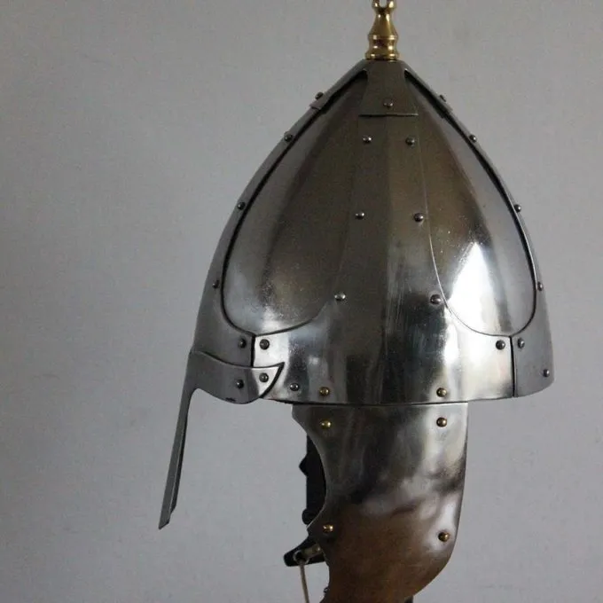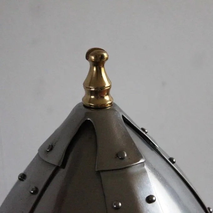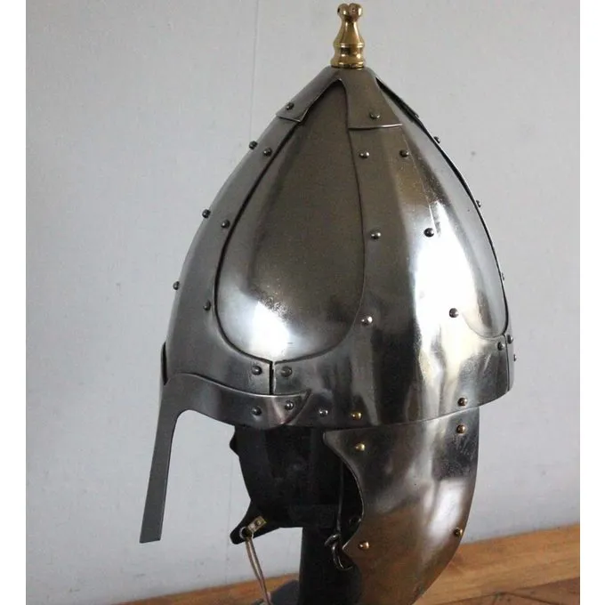 Ce casque est une réplique d’un original germanique de 500 AD. Le casque a un pic au sommet sur lequel crin peut être fixé. Le casque est fourni avec rabats de joues qui ont été utilisés jusqu’à ce que le 7ème siècle après JC.