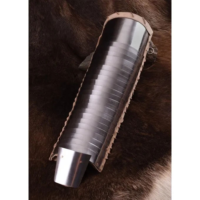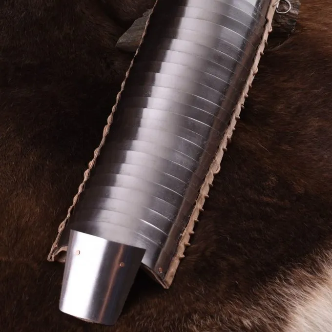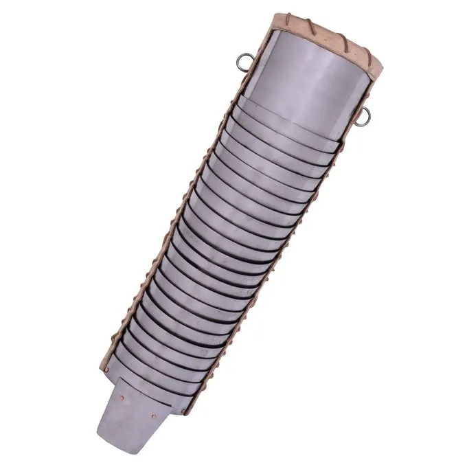 Le manica est une pièce d’armure pour le bras qui a été utilisé par gladiateurs et légionnaires. Les gens n’ont pas beaucoup d’argent à dépenser sur ces équipements, donc principalement des matières comme le lin, du cuir, des morceaux de la chaîne et des plaques d’acier résiduelles ont été utilisés. Dans l’armée romaine, ils pourraient même se forger ce dans les cas d’urgence. Cette Manica est en acier de meilleure qualité que les originaux et se compose de chevauchement des plaques d’acier. Le Manica protège le bras de l’épaule à la main. Il a une plaque de protection en acier supplémentaire pour la main et un intérieur en cuir pour porter supplémentaire confort. Le Manica a quatre lanières de cuir et un anneau pour le fixer à votre bras et l’armure. Les bretelles sont réglables en taille. Une belle réplique pour Roman reconstitution et des gladiateurs.
