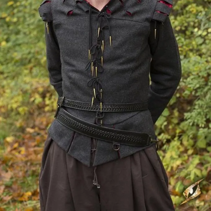 Les ceintures d’épées de ce genre ont été portées au Moyen Âge et à la Renaissance. Cette ceinture est décorée dans un style historique authentique avec un magnifique motif en cuir tressé à la main sur toute la largeur. La ceinture est composée de deux parties: la partie supérieure est plus étroite et se porte autour de la taille, la partie inférieure est plus large et tombe autour des hanches. La ceinture a un anneau pour attacher un fourreau. Avec cette ceinture, votre épée peut accrocher confortablement autour de votre taille pendant une période plus longue.