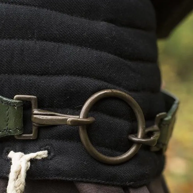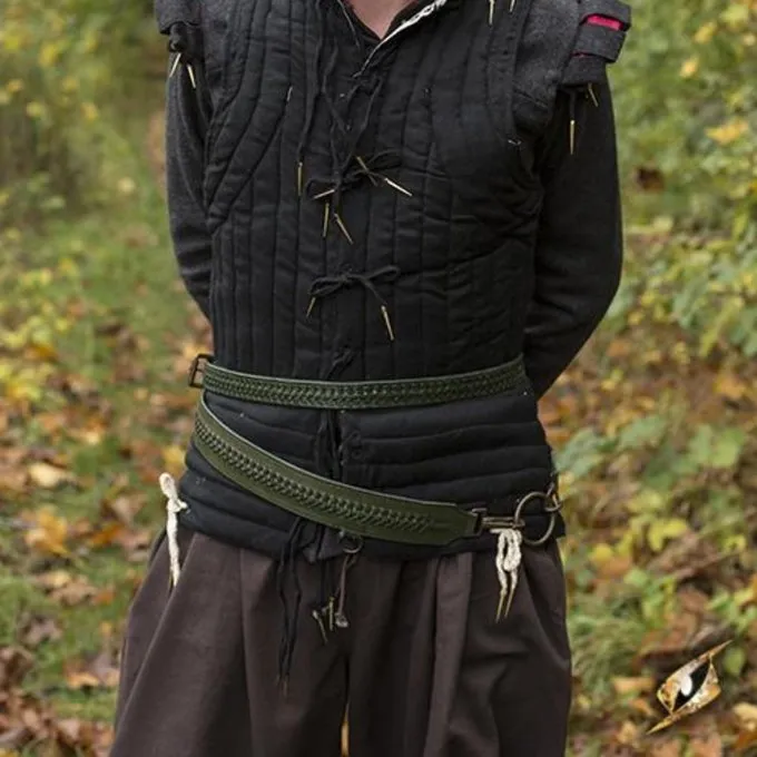 Les ceintures d’épées de ce genre ont été portées au Moyen Âge et à la Renaissance. Cette ceinture est décorée dans un style historique authentique avec un magnifique motif en cuir tressé à la main sur toute la largeur. La ceinture est composée de deux parties: la partie supérieure est plus étroite et se porte autour de la taille, la partie inférieure est plus large et tombe autour des hanches. La ceinture a un anneau pour attacher un fourreau. Avec cette ceinture, votre épée peut accrocher confortablement autour de votre taille pendant une période plus longue.