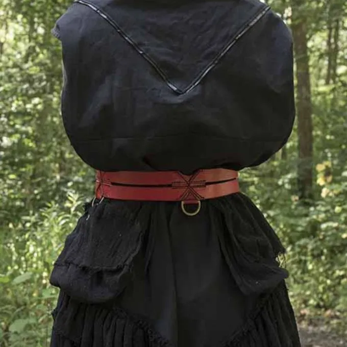 Cette ceinture en cuir pratique est fabriquée à partir de cuir tanné végétal de haute qualité. La ceinture est composée de deux courroies simples reliées par quatre inserts en cuir en forme de X. La ceinture comporte quatre anneaux en laiton qui sont extrêmement utiles pour suspendre du matériel, tel qu’une poche, des couteaux de GN, de la nourriture, etc. Vous pouvez attacher des objets ensemble et les attacher aux anneaux avec des sangles et des cordes. De cette façon, vous pouvez personnaliser la ceinture en fonction de votre propre costume de GN, de cosplay ou de fantaisie. La ceinture est multifonctionnelle et convient à tous les personnages de GN. Très belle au-dessus d’une tunique, mais peut également être combiné avec des robes ou à porter sur une cape.