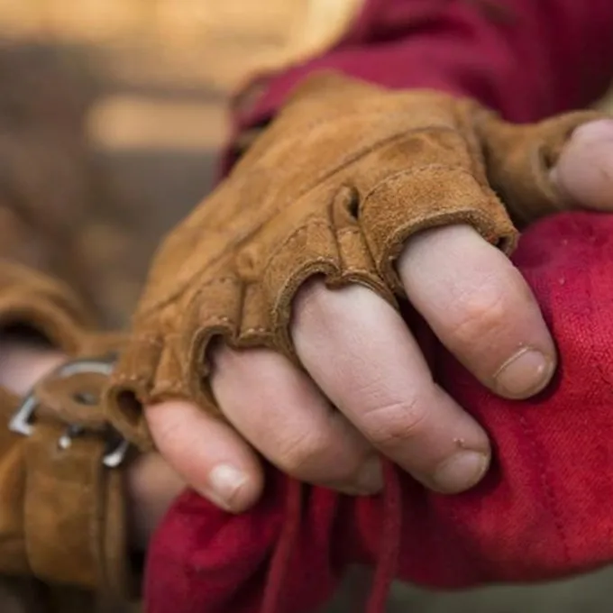 Ces gants pratiques sans doigts sont en cuir suédé doux et confortable. Vous avez besoin d’une protection ou d’un échauffement des mains, mais en même temps d’une flexibilité maximale des mains et des doigts? Ensuite, ces gants sont un match parfait. Les gants ont des coutures cousues à la main, ce qui rend le matériau plus durable et moins susceptible de se déchirer ou de s’endommager. Autour du poignet se trouve une boucle pour attacher le gant. Ces gants sont un excellent accessoire pour tout costume.