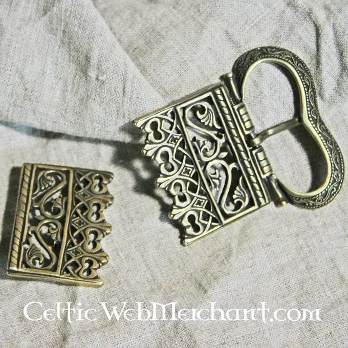 Cette boucle de ceinture est réalisée d’après une représentation de l’œuvre d’art « Portrait de femme » de l’artiste flamand du 15ème siècle Rogier van der Weyden. Les boucles étaient portées en Bourgogne, en Flandre et en France au XVe siècle. Ils étaient portés aussi bien par les hommes que par les femmes.