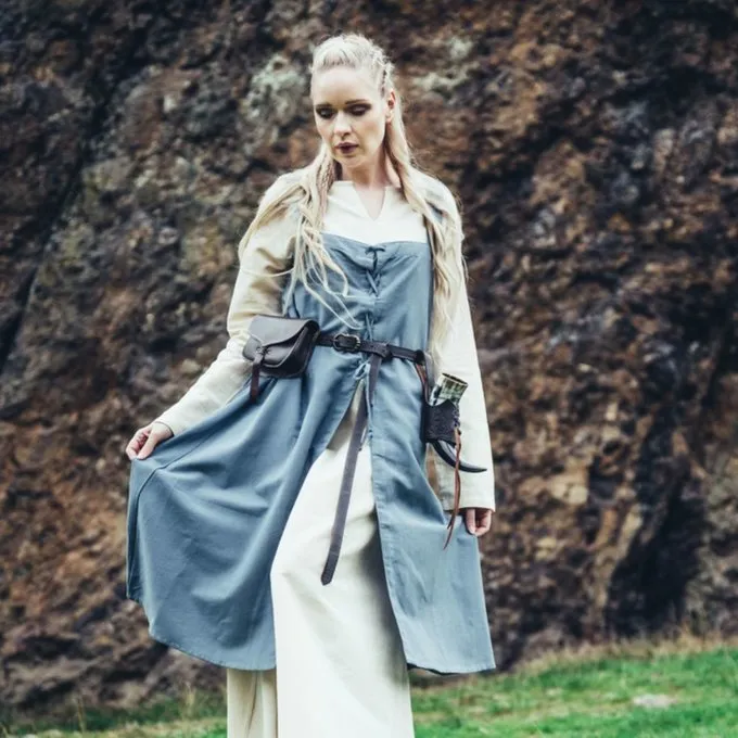 Une ceinture idéale pour les robes et tuniques qui donne un meilleur ajustement aux vêtements historiques. Il est joliment décoré d’un motif de nœud celtique. La ceinture a une boucle de couleur bronze médiévale.