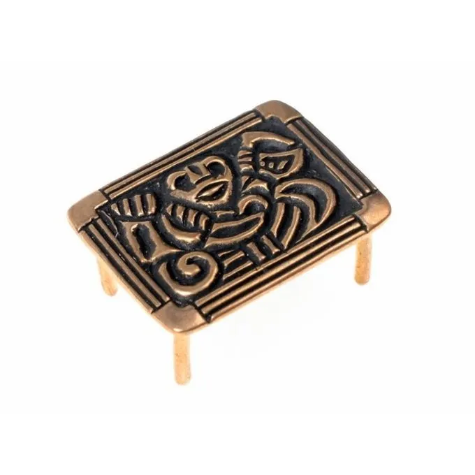 Ce raccord de ceinture est une réplique d’un original neuvième-dixième siècle fouillée sur l’île suédoise Adelsö. Ceintures étaient souvent donnés comme cadeaux d’enterrement par les Vikings. Ce raccord de ceinture est faite dans le style Borre.