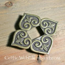 Ce sac décoration est faite d’après un original historique creusé dans la ville de commerce viking de Birka en Suède. Il est inspiré du style de l’art des Magyars. Il mesure 8,5 x 7,5 cm et est de couleur bronze.